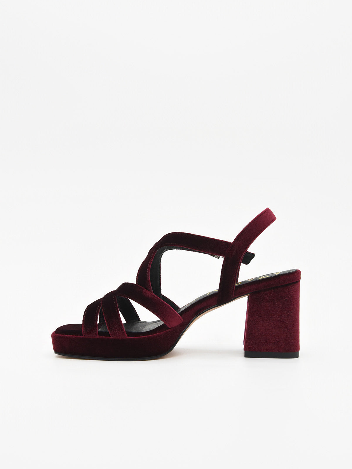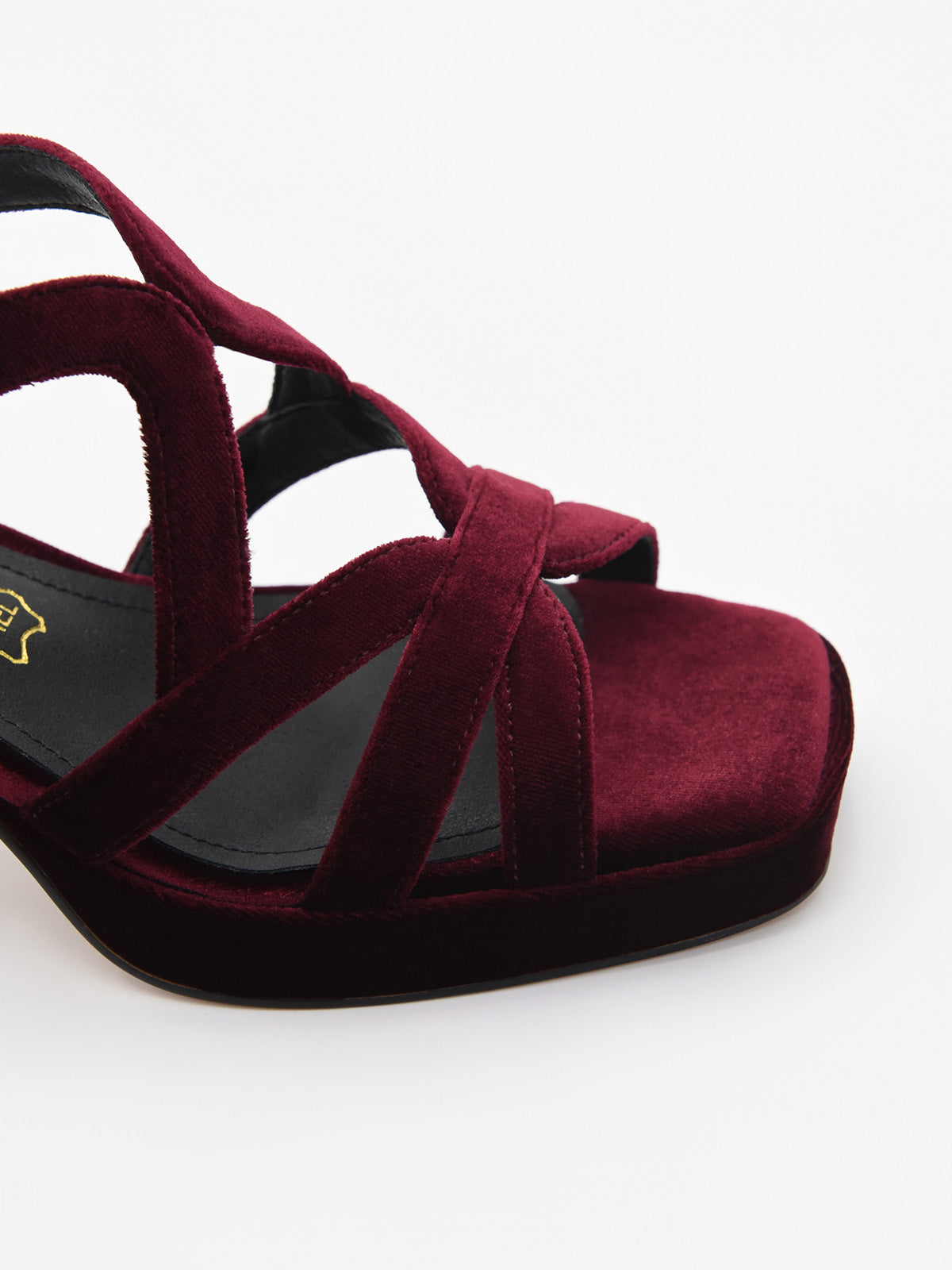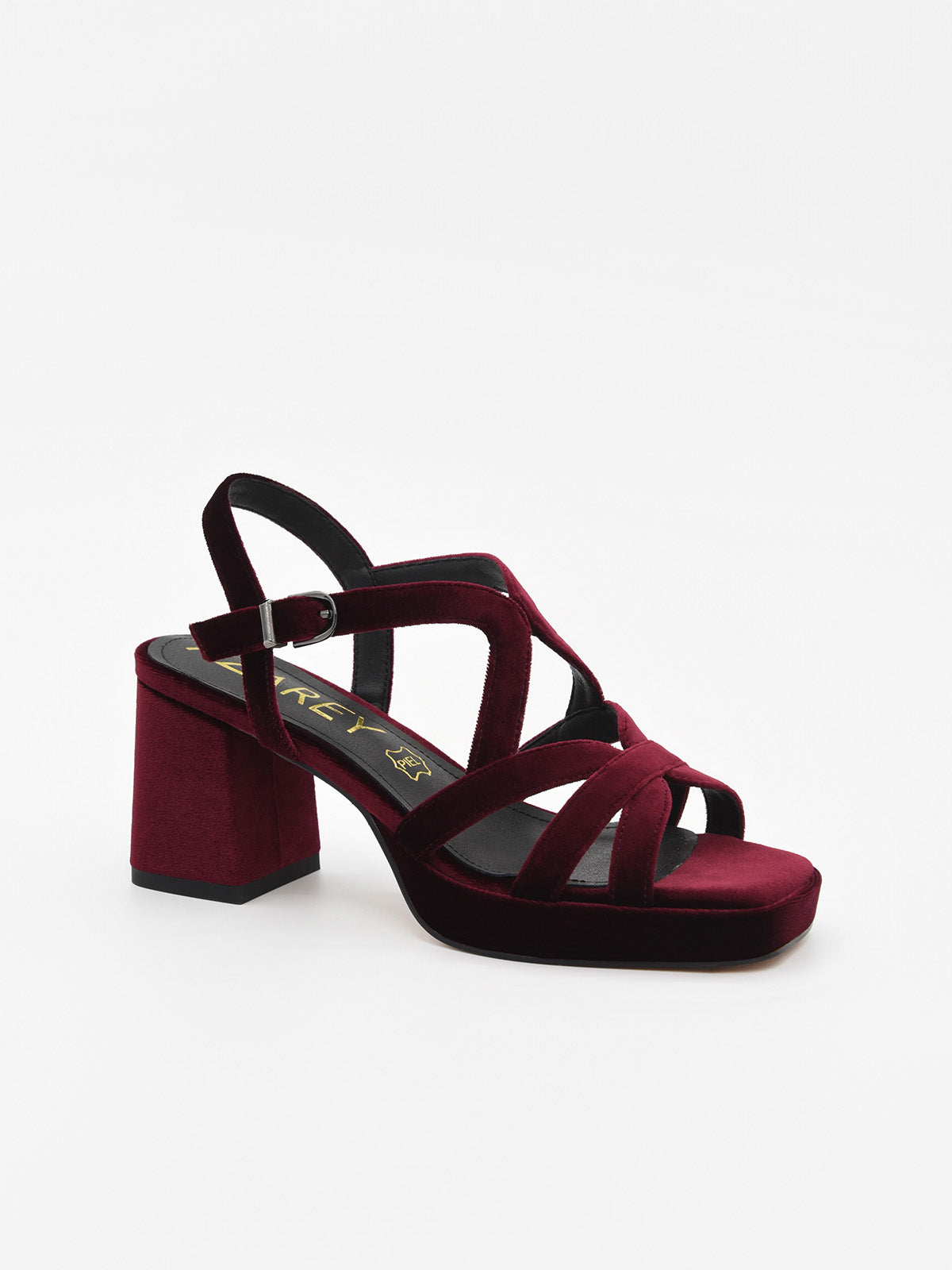 Parece um Bordeaux Velvet Sandal Com um salto largo e estável Isso contribui conforto ao longo do dia. Dele Design de tiras cruzadas estiliza o pé, enquanto o Fechamento ajustável da fivela No tornozelo, garante um apoio perfeito. O acabamento aveludado, toque suave e aparência elegante, faça deste modelo o aliado ideal para completar sua aparência mais sofisticada, tanto em eventos especiais quanto para jantares elegantes.