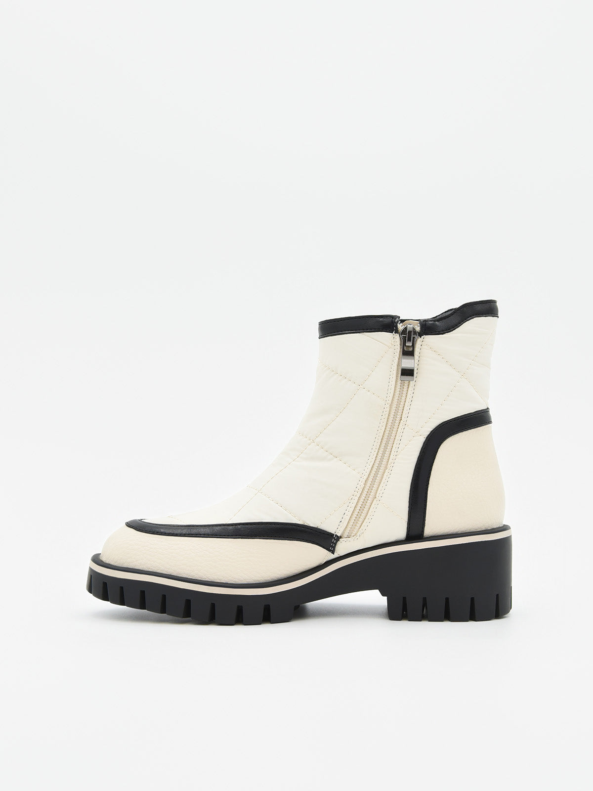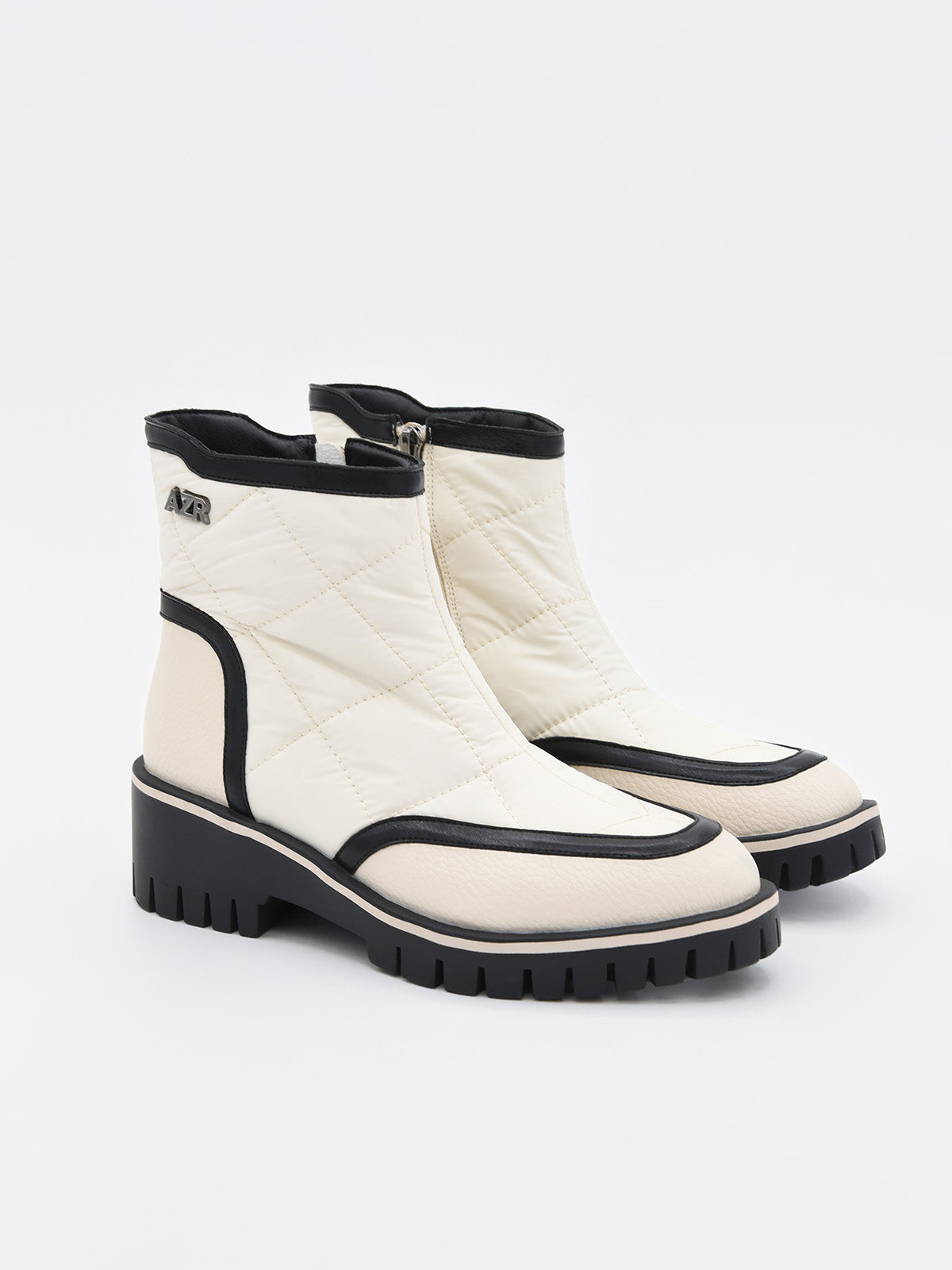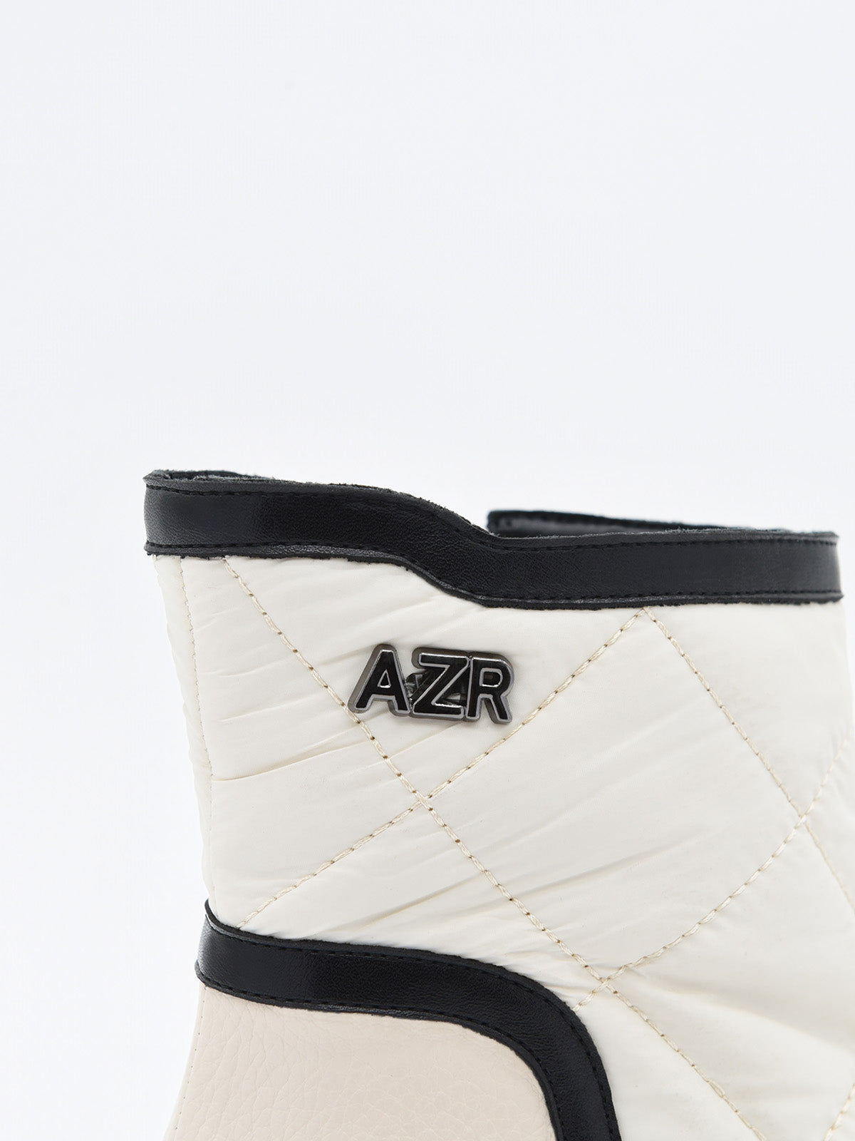 Aceite uma virada sofisticada e atual para o seu looks de inverno com isso Saque para mulheres acolchoadas em branco cru, com detalhes em preto e um sutil Logotipo de metal azr Isso acrescenta um toque elegante e moderno. Seu design de inspiração après-ski, com textura de Romboidal acolchoado, combina perfeitamente com Não -deslize grossa, projetado para fornecer segurança e estilo em cada etapa.
