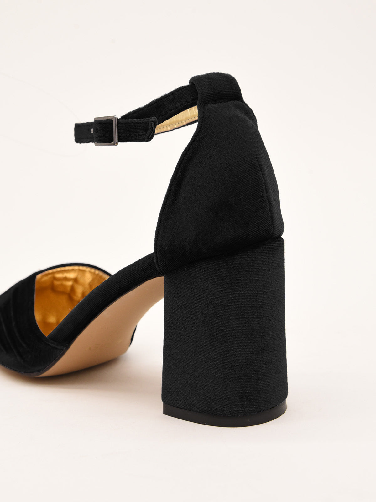 Entre um toque de luxo em sua coleção de calçados com nosso Sapatos de salão de veludo preto. Fabricados com um veludo suave que envolve cada etapa com elegância, esses sapatos se destacam por sua ponta fina e uma alça ajustável no tornozelo que garante um ajuste confortável e seguro. O salto grosso oferece estabilidade sem sacrificar o estilo, tornando esses sapatos uma opção ideal para eventos formais e para uma noite especial. Levante sua roupa com este modelo elegante e atemporal ..